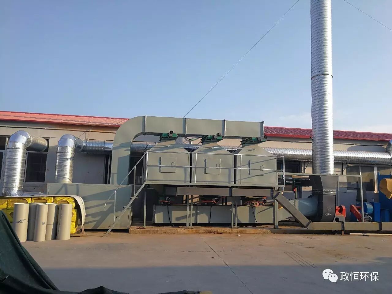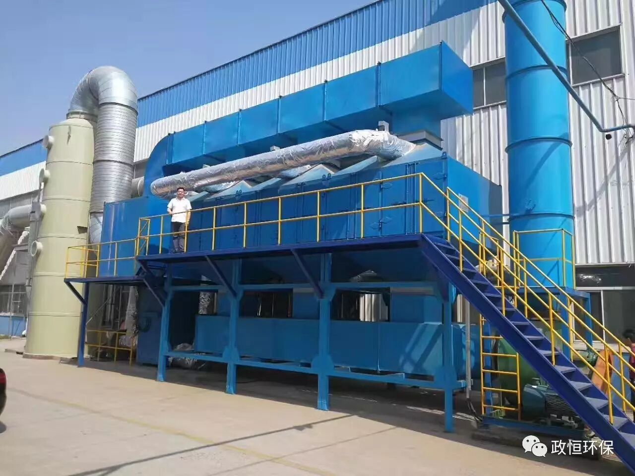 先利用活性炭進行吸附濃縮,當活性炭吸附達到飽和時,利用電加熱啟動催化燃燒設備,并利用熱空氣加熱活性炭吸附床,當催化燃燒反應床加熱到約 260℃,活性炭吸附床局部達到 60~120℃時,從吸附床解吸出來的高濃度廢氣就可以在催化反應床中進行氧化反應。反應后的高溫氣體經(jīng)換熱器的換熱,換熱后的氣體壹部分回用送入活性炭吸附床進行脫附,另一部分排入大氣。脫附出來的廢氣經(jīng)換熱器換熱后溫度迅速提高,降低了催化燃燒的耗電電功率,從而使催化燃燒裝置及脫附過程達到小功率運行。